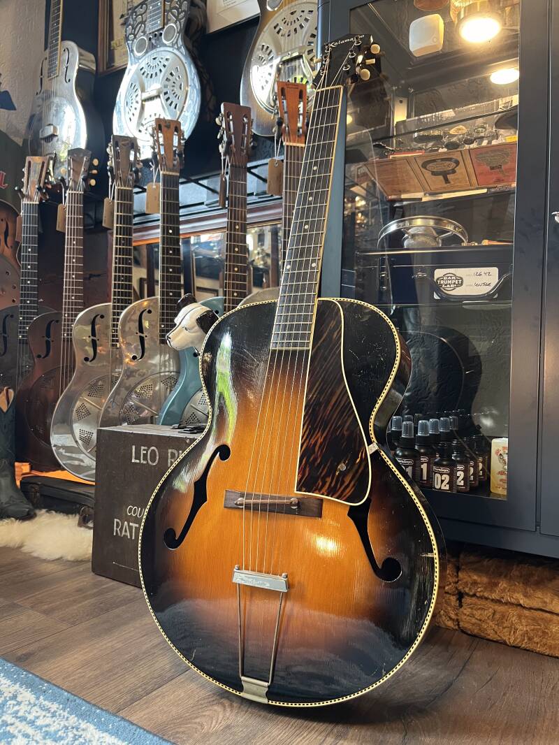 Deze Gibson Kalamazoo uit 1939 is in zeer mooie staat en beschikt zelfs nog over het originele koffertje. Een mooi stuk geschiedenis en een heel goed instrument in een!